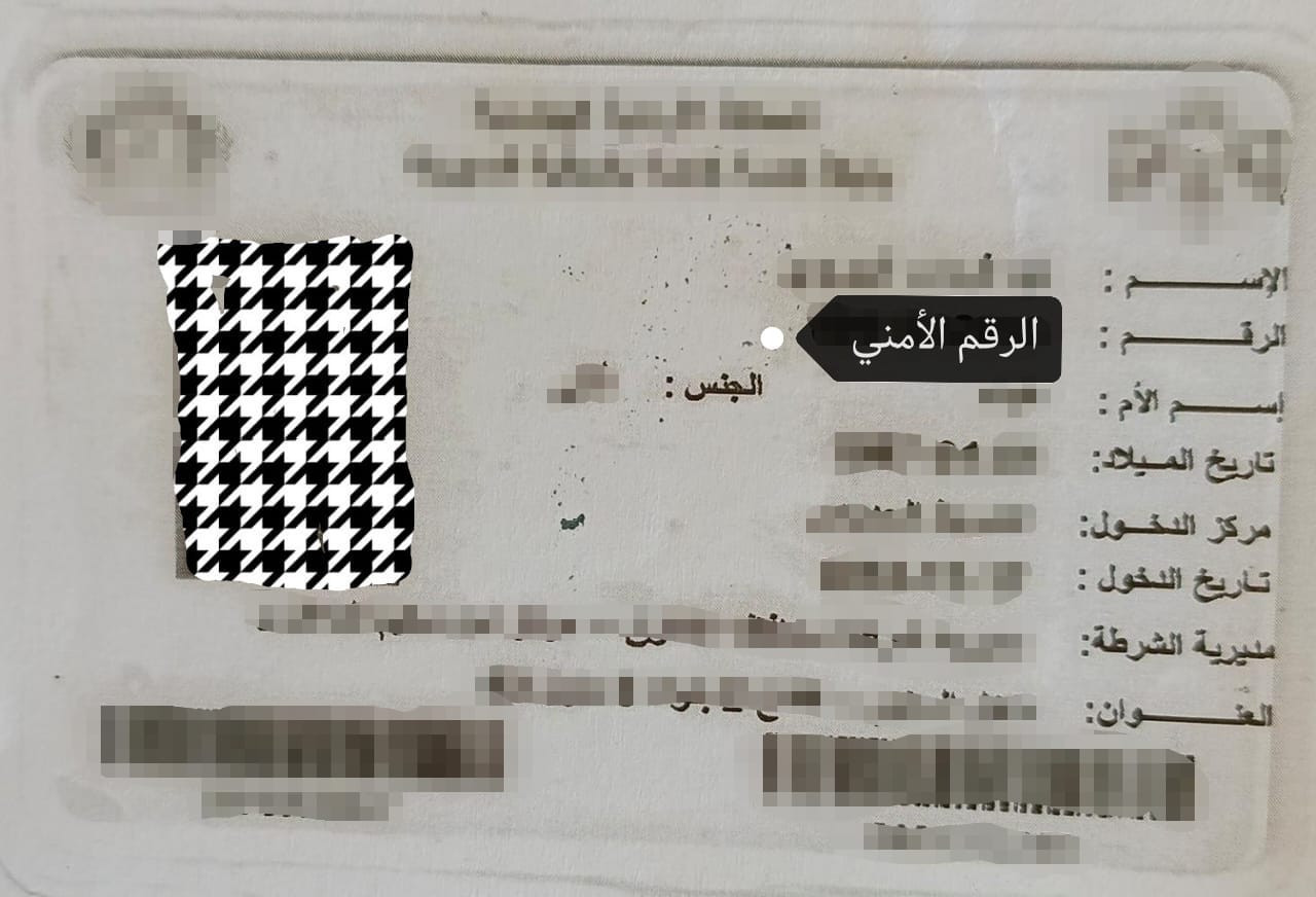 رقم البطاقة الأمنية